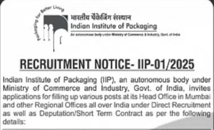 Indian Institute of Packaging Recruitment 2025 Overview